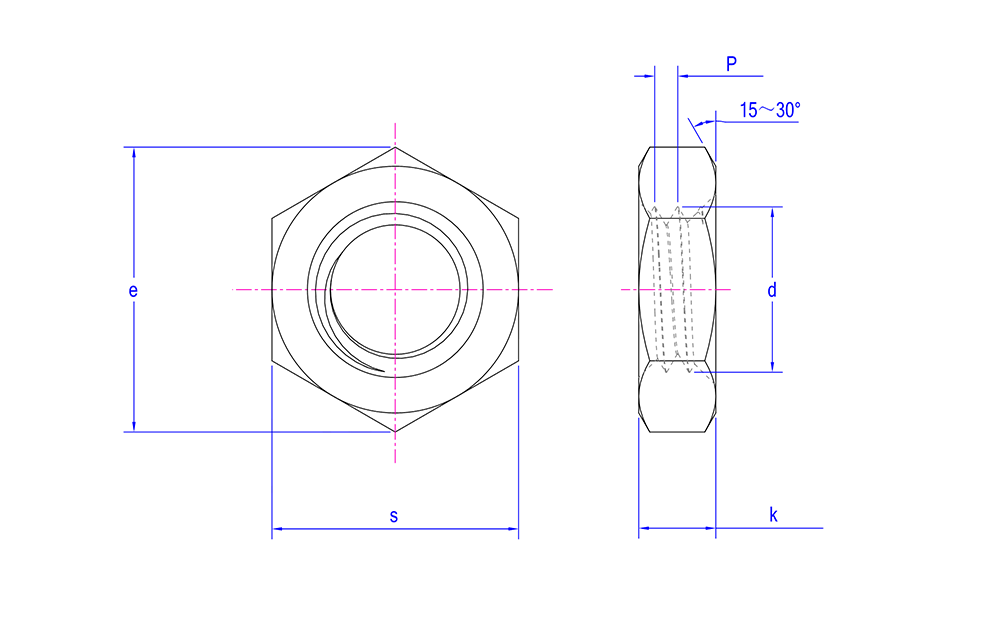 | Udseende egenskaber | Form: Sekskantet med seks symmetriske sider, hvilket gør det nemt at stramme og fjerne ved hjælp af en skruenøgle eller andet værktøj. Dette design giver bedre betjeningskomfort i trange rum. Tykkelse: Sammenlignet med standard sekskantmøtrikker er den tyndere, klassificeret som en tynd møtrik. Den er forholdsvis let og fylder mindre. Overfladebehandling: Bevarer typisk den naturlige rustfri stålfarve med en metallisk glans. Det kan også gennemgå passivering, polering eller andre overfladebehandlinger efter behov for at forbedre korrosionsbestandighed og æstetik. |
