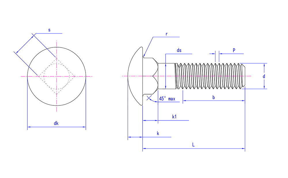 | Hovedfunktioner | Halvcirkulært hoved med firkantet hals anti-rotationsdesign |