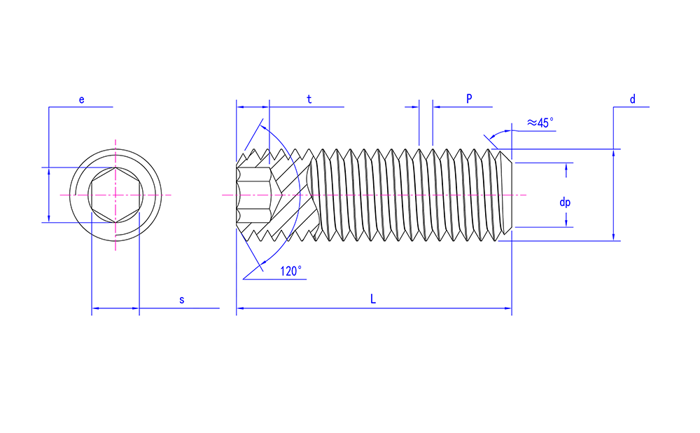 DIN 913 rustfrit stål sekskantskruer med flad spids