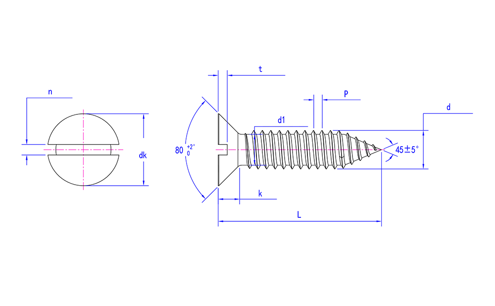 | Nøgleindikatorer for udvælgelse | Skruelængde, diameter, forsænket vinkel, gevindstørrelse |