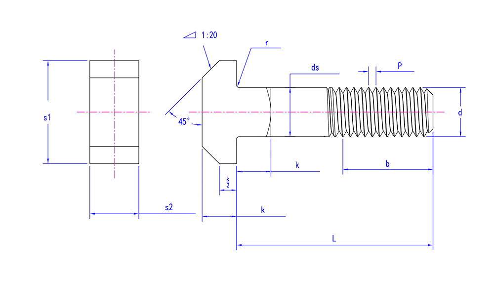 | Nøgleindikatorer for udvælgelse | T-hovedform, firkantet halsstørrelse, boltlængde, diameter, gevindlængde, materiale. |