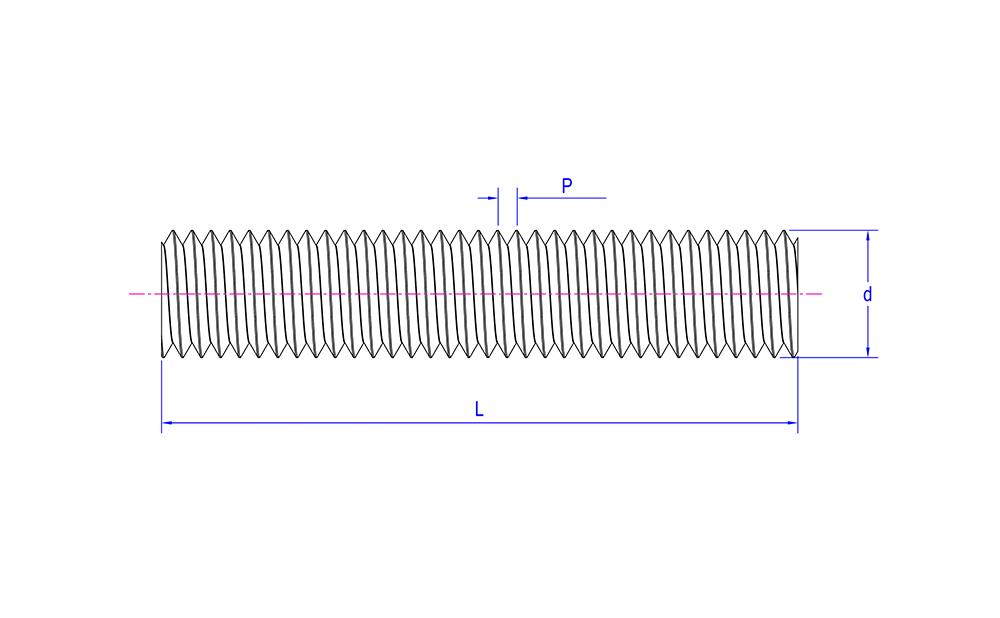 | Udseende egenskaber | Lang stangform, ofte cylindrisk, glat eller overfladebehandlet, fuldlængde gevind |